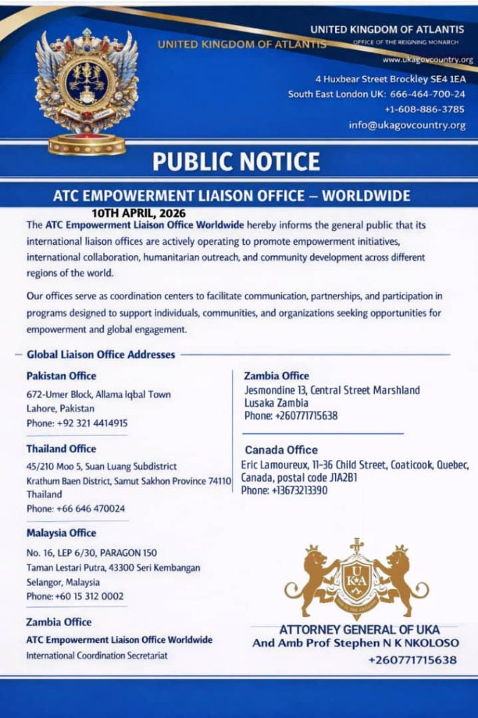 All liaison offices are mandated to operate as accessible service and information hubs for citizens, non-citizens, and strategic partners. The government expressed its appreciation to supporters and stakeholders for their continued trust and commitment to the vision and initiatives of the United Kingdom of Atlantis.